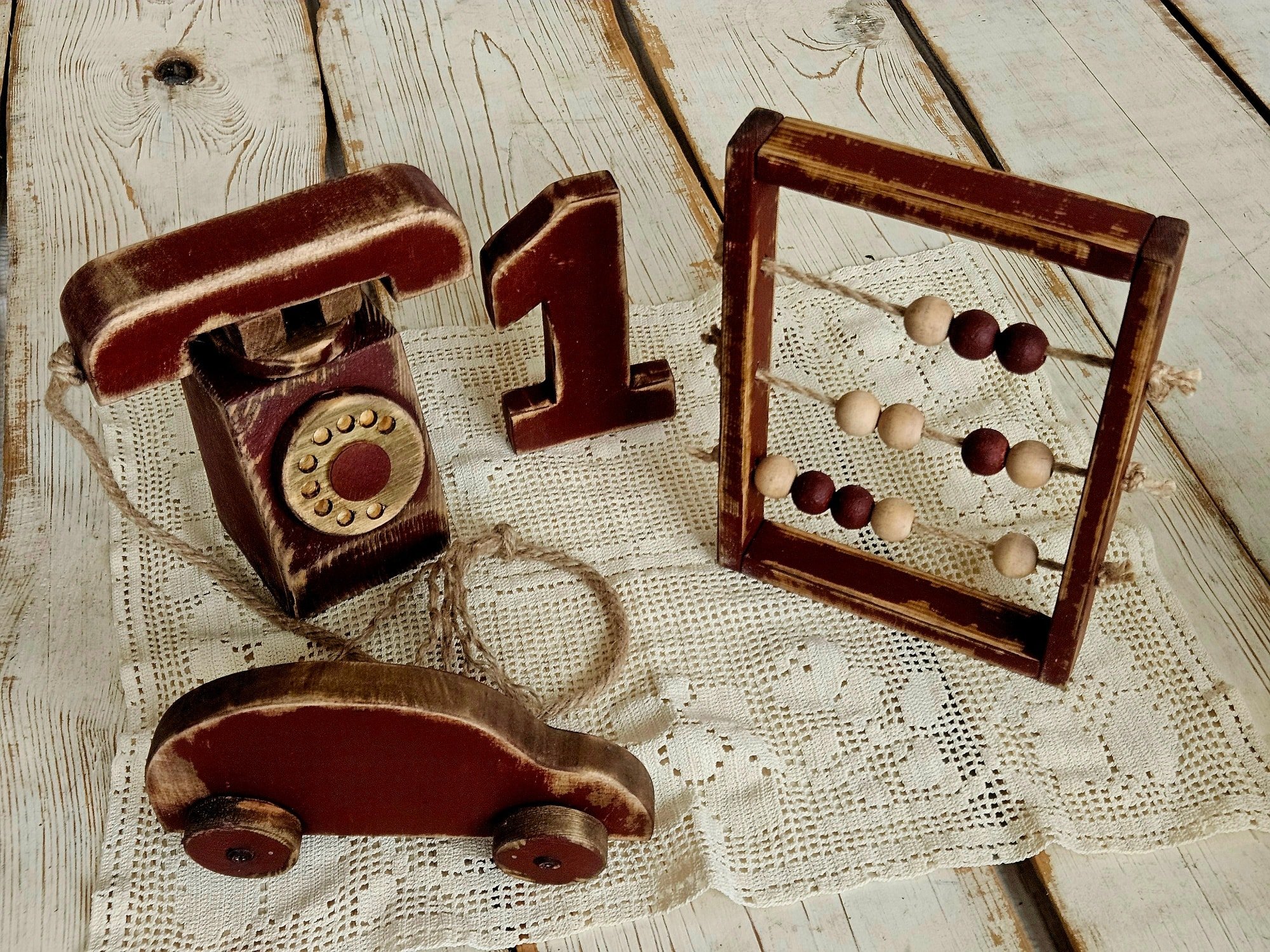 Handmade wooden set *Car + abacus + number 1+Phone