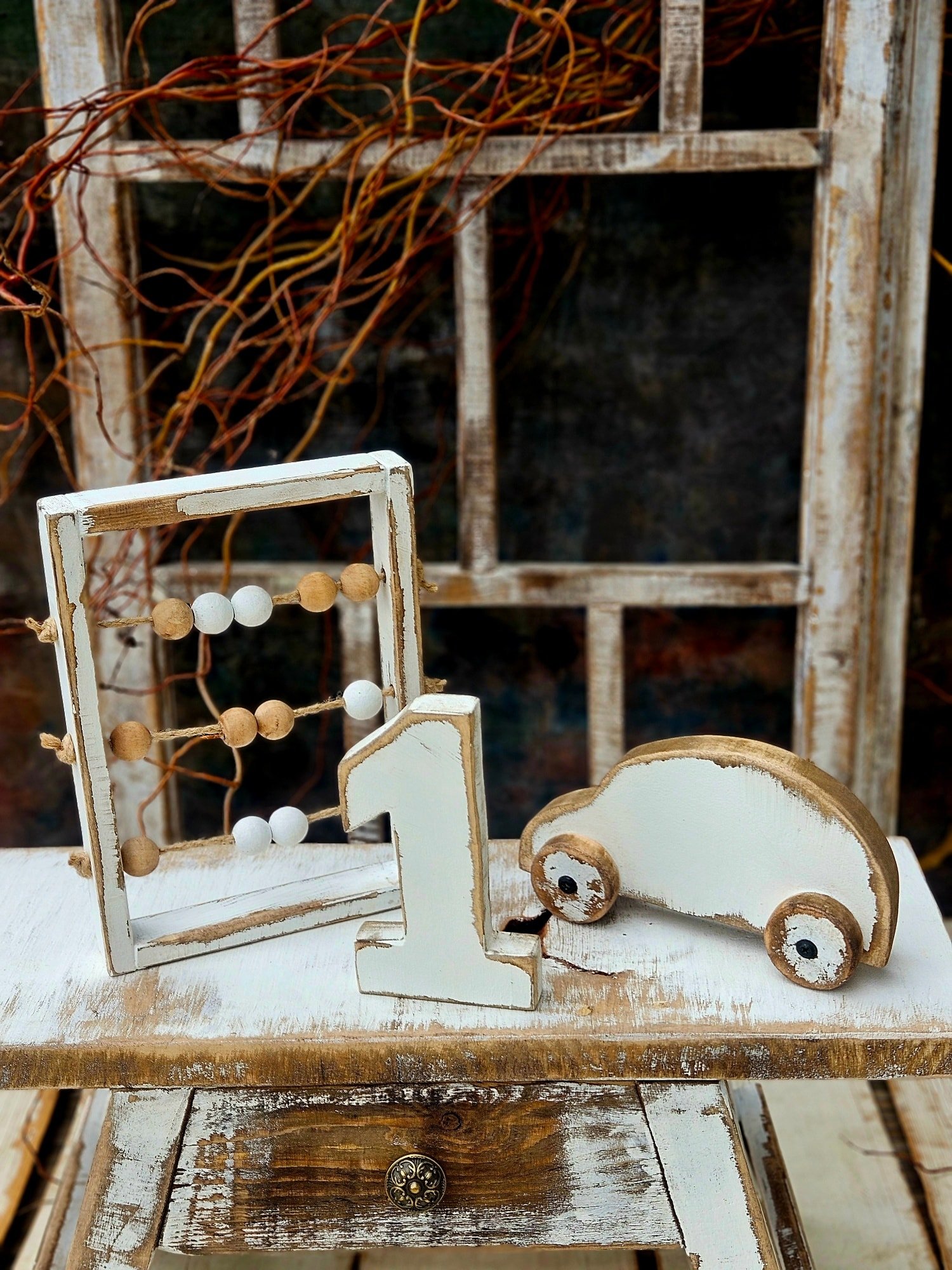 Handmade wooden set *Car + abacus + number 1