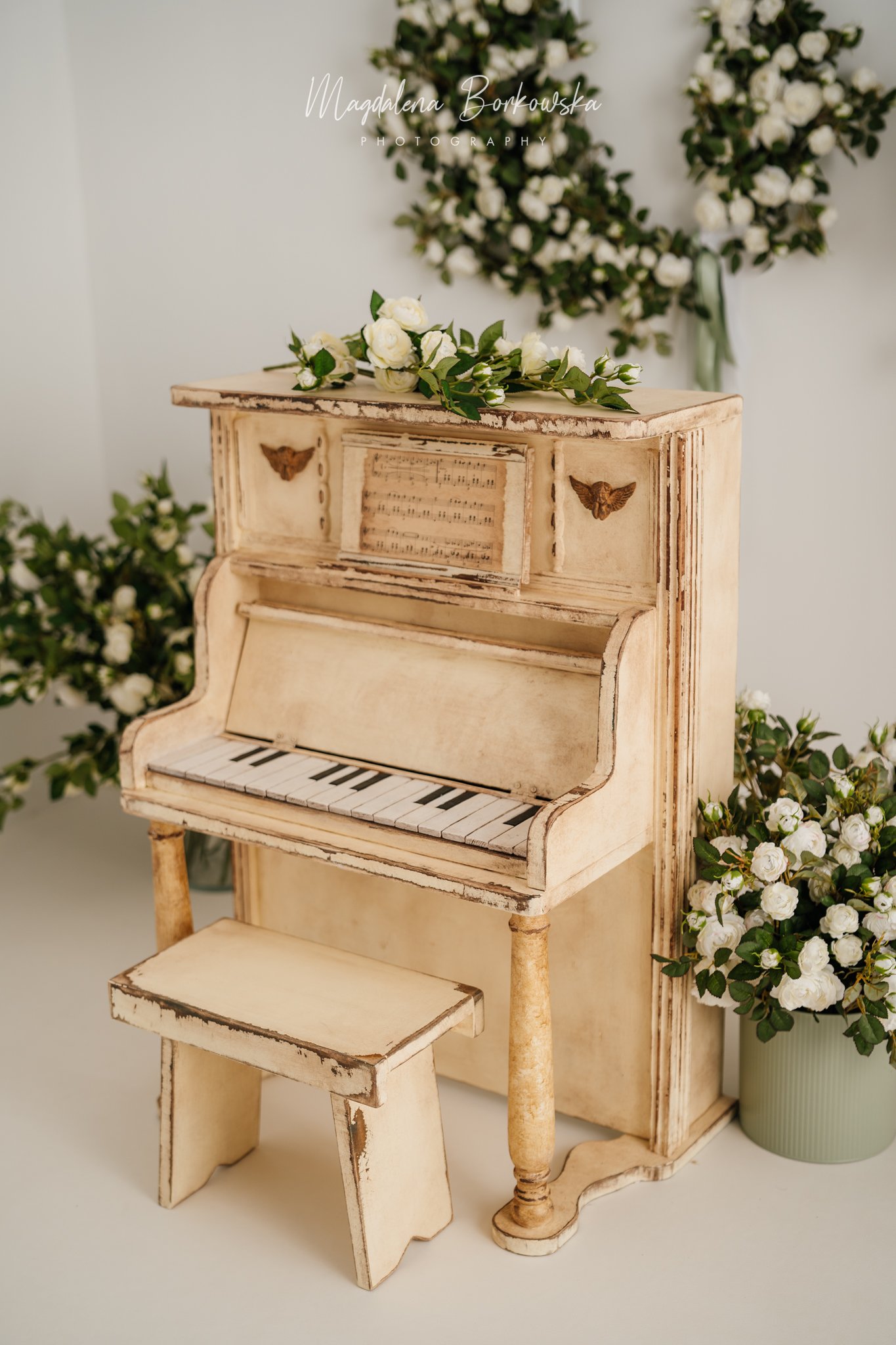 set - piano + sheet music + stool