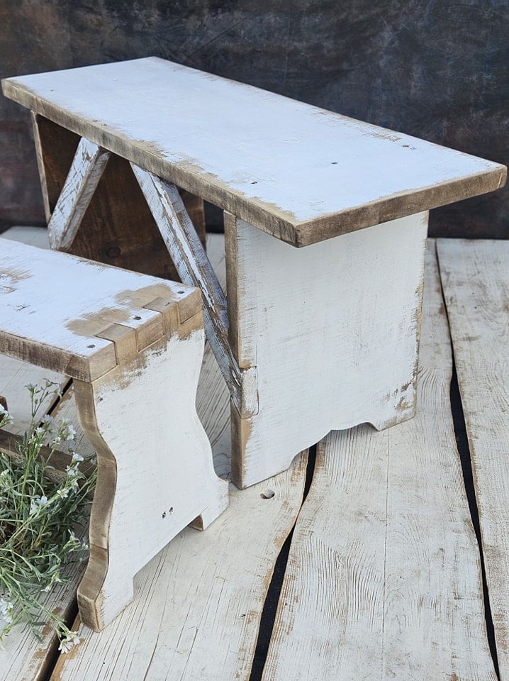 SET Stool & bench white vintage 85x29
